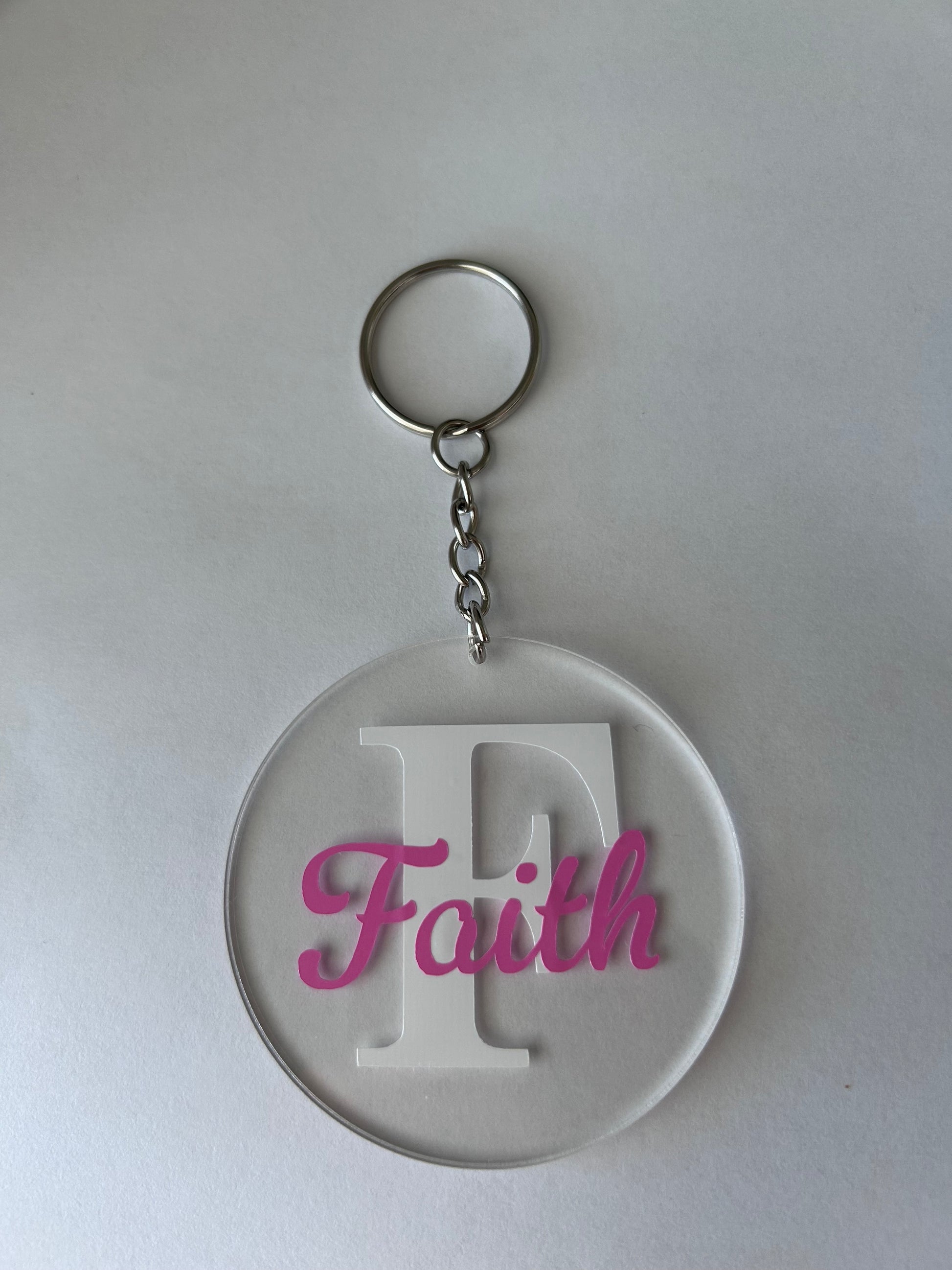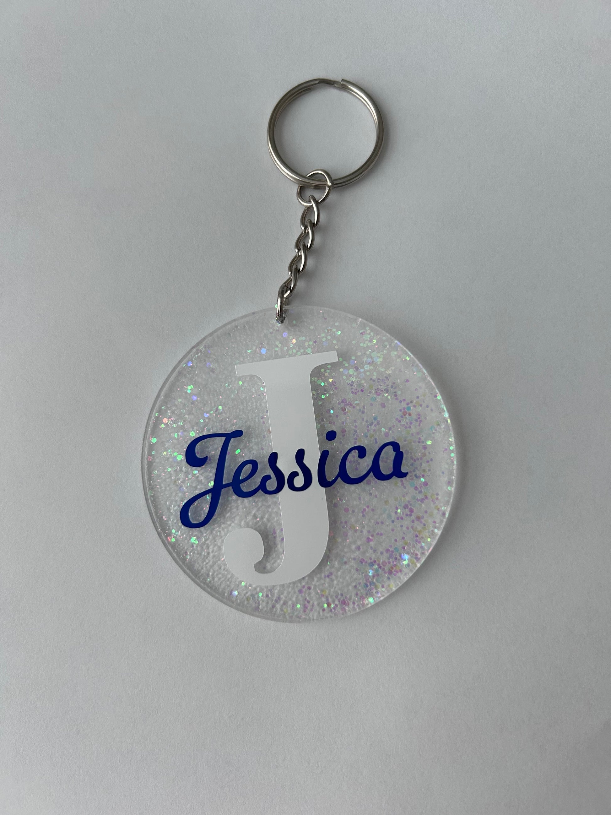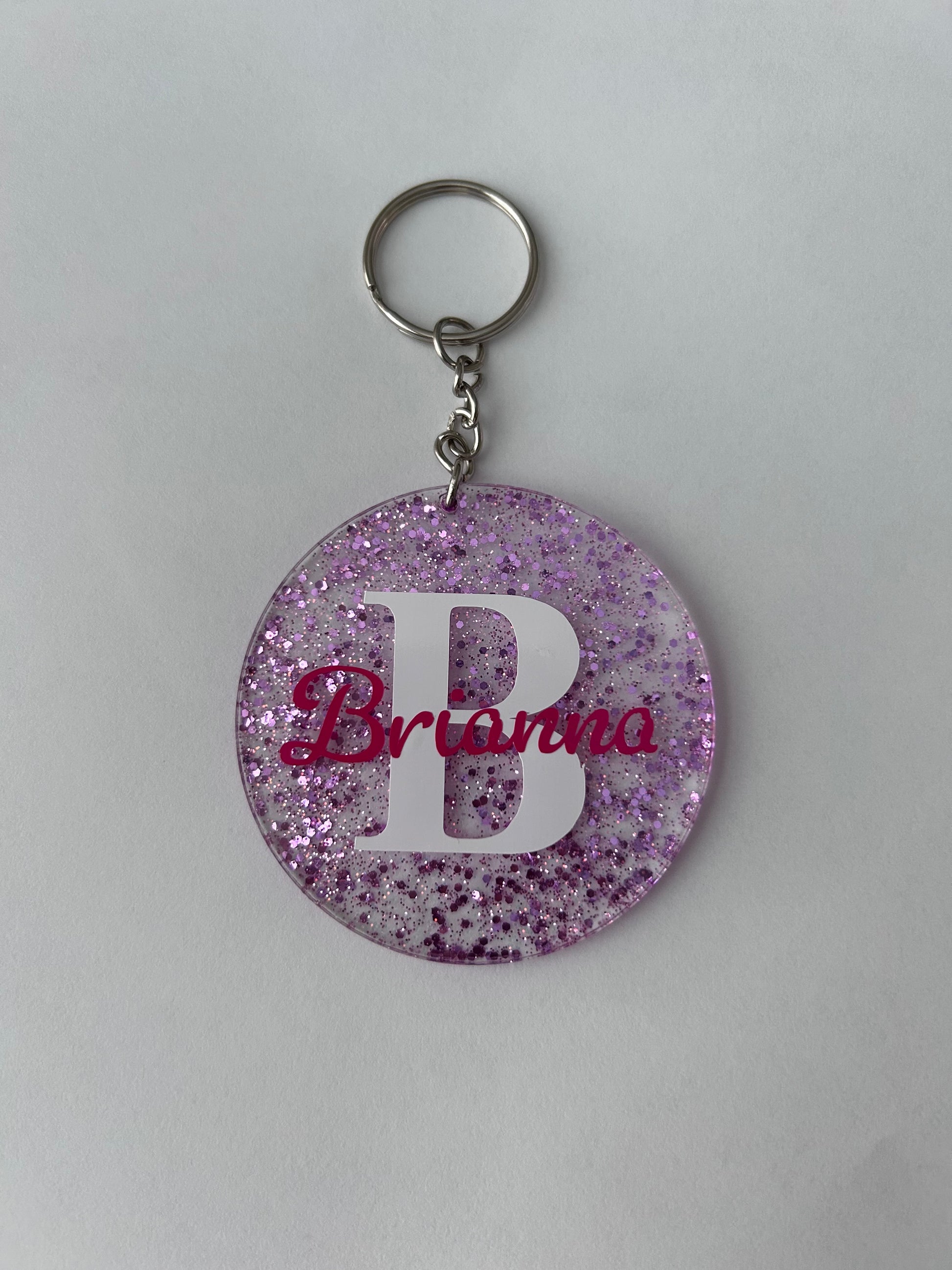 Elevate your keychain game with our Round Name Keychain! Made from durable acrylic, this customizable keychain allows you to choose the color of your name and initial, as well as add a painted background color. Sleek, stylish, and one-of-a-kind, this keychain is the perfect way to showcase your personal style.